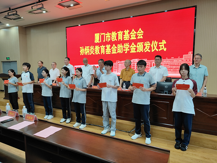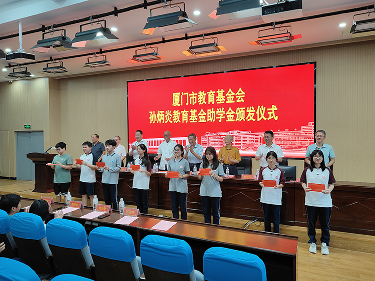 廈門市教育基金會法人潘世建講話,他深深感恩陳嘉庚及孫炳炎先生的愛國教育情操,寄語受助學(xué)生“夢在前面,路在腳下,鍥爾不舍,馳而不息”,希望大家能朝前看,努力成為社會的棟梁。
